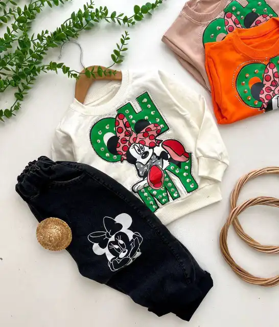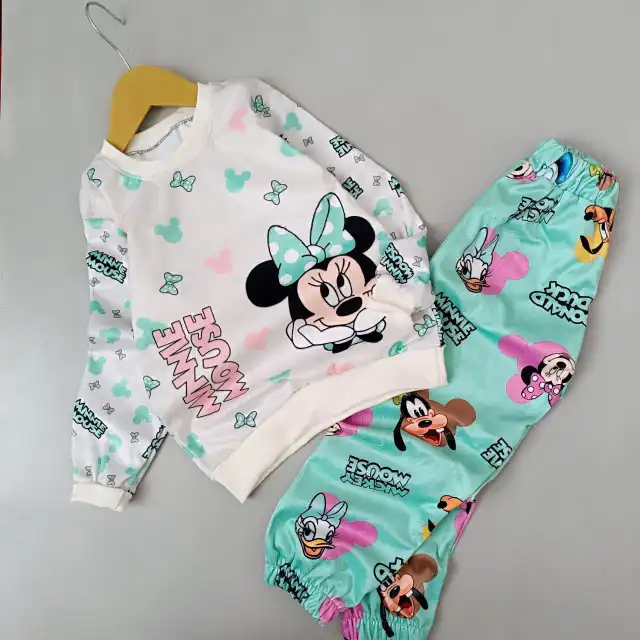 بلوز و شلوار خونگی طرح میکی ملانژ پنبه